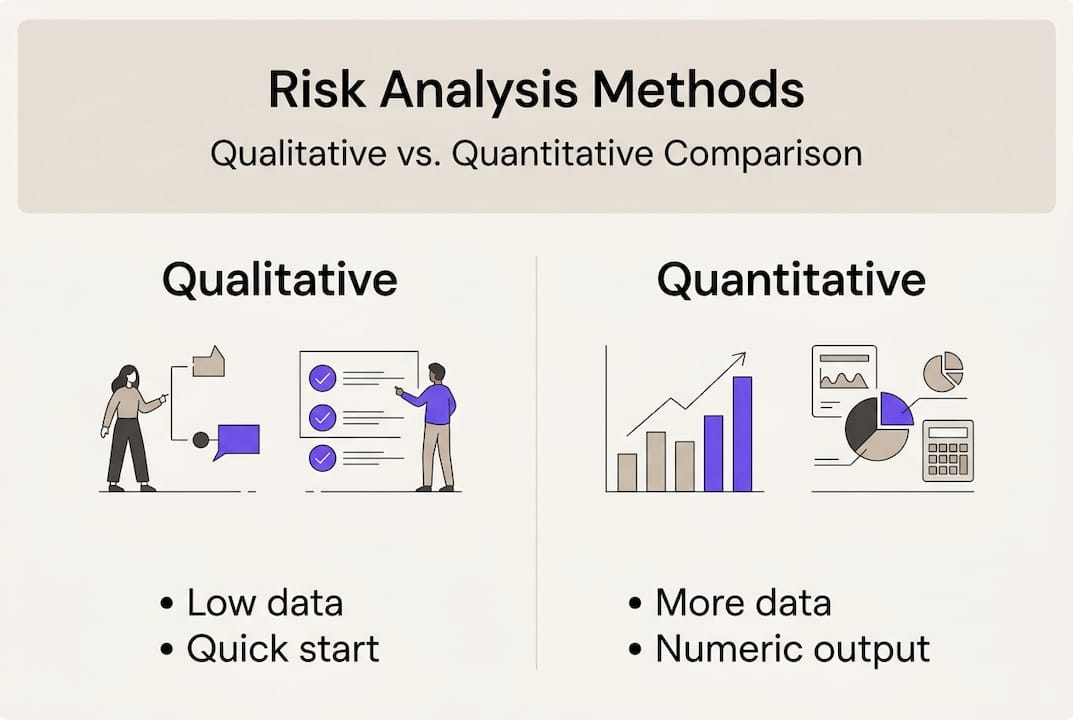 Choosing the right method depends on three factors: project complexity, available data, and your timeframe. A small internal initiative benefits from a well-run qualitative workshop. A multi-year infrastructure programme demands quantitative modelling to justify contingency budgets and satisfy governance boards.
